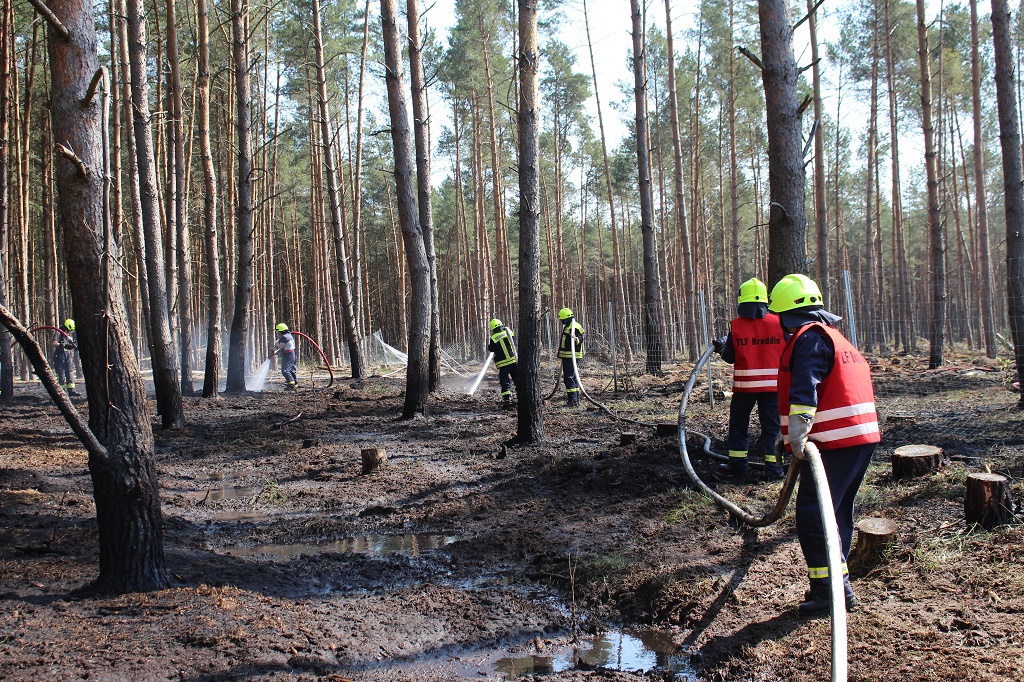 Neustadt(Dosse) OT Dreetz - Zu einem Großaufgebot der Feuerwehr kam es am heutigen Dienstagvormittag gegen 11:54 Uhr in Dreetz. Ein Zivilist meldete der Regionalleitstelle Nordwest in Potsdam, dass zwischen Lüttgen und Dreetz an der L141 ein Feuer ausgebrochen ist. Daraufhin wurden mehrere Feuerwehren alarmiert, unter anderem auch der 4 Waldbrand-Löschzug. Auf Grund des starken Windes, war es für die 30 Einsatzkräfte schwierig, den Brand zu orten, da kein Rauch zu sehen war. Das Feuer hat sich auf einer Fläche von 3000qm ausgebreitet. Der Einsatz wurde um 16 Uhr beendet und an die Forst übergeben.